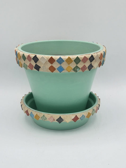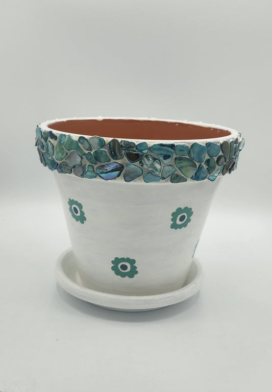 The featured product collection showcases unique, handmade mosaic planter pots. These mosaic planters are available in various sizes and colors, each adorned with distinctive designs and patterns. These pots will enhance the beauty of any plant or flower.
