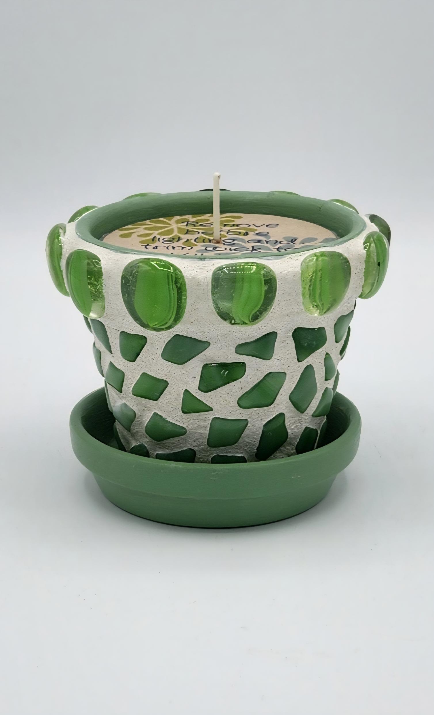 Elevate your space with this beautifully crafted mosaic pot containing a scented candle infused with the clean, inviting aroma of Very Vanilla. This candle combines decorative appeal with a fresh fragrance that enhances any room’s atmosphere. Designed to cultivate warmth and sophistication, it balances aesthetic charm with a carefully measured scent experience. The pot measures 3 inches in height, with a 3-inch diameter opening, and contains 4 ounces of fragranced wax.